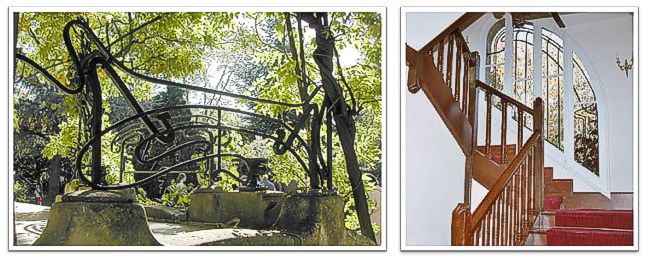 Les ferronneries et l'escalier, représentatifs de l'Art Nouveau © Clichés La Hublotière A l'extérieur, chaque façade présente une originalité et une identité propre. La façade principale est marquée par une grande symétrie. Peut-être est-ce dû à la volonté du commanditaire ou au souci de Guimard de toujours s'adapter aux environnements de ses constructions : ici Le Vésinet, avec son statut de ville-parc et ses grandes maisons de style classique, ayant bénéficié d'un développement urbanistique et paysager hors du commun.