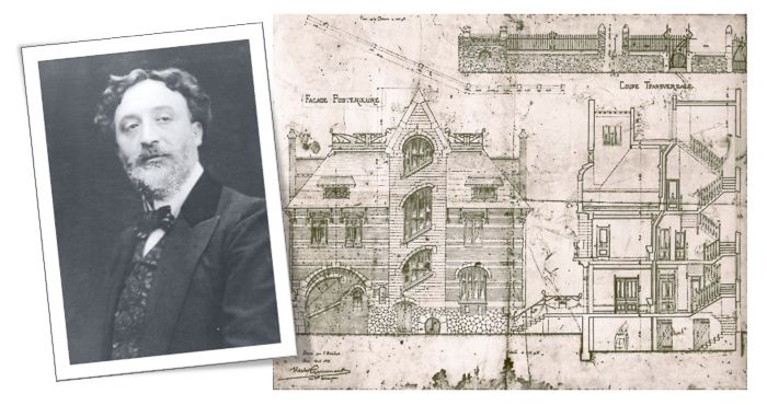 Hector Guimard (1867-1942) est un des principaux représentants français de l’Art Nouveau. **** NOGUÈS, Lucien (1845-1902) Fils d'un négociant de l'ancienne île Bourbon, Lucien Marie Noguès est né le 1er juin 1845, à Saint-Denis de la Réunion. Installé d'abord à Nantes comme " propriétaire" et courtier de marchandises, il a épousé en 1869 Palmyre Anne Benoist qui lui a donné deux enfants : Palmyre Marie (1871-1889) et André (1872-1878). En 1874, La famille s'installe à Paris où Lucien Noguès est associé dans une agence de change. André meurt à 6 ans, en avril 1878, peu de temps après sa mère, décédée en février de la même année, alors que Lucien Noguès devenait directeur du Salon des Courses, sorte de club organisant pour ses membres des paris sur les courses hippiques. En 1884, il convolait en secondes noces à Paris avec Agathe Chassang, orpheline de dix ans sa cadette. En 1888, il occupe au Vésinet, une maison de villégiature, la villa Jeanne, allée d'Isly où sa fille Palmyre meurt l'année suivante, à 17 ans. Peu après, la famille enménage au 46 avenue Centrale (actuelle av. Georges-Clemenceau) dans la villa Le Charme que M. Noguès vient d'acheter. La famille Noguès-Chassang offrira à la paroisse de Ste Marguerite plusieurs verrières dont l'étude apporte quelques éclaircissements dans l'histoire de cette famille. Ainsi, une petite fille prénommée Jeanne Yvonne Agathe Marie, née à Paris " de père et de mère non dénommés" en 1887, meurt en mai 1894, toujours privée de patronyme, au domicile de M. Noguès. Mais quelques mois plus tard, une verrière « à la mémoire d'Yvonne Chassang, 22 mai 1894 » viendra s'ajouter aux vitraux de Ste Marguerite. En 1896, Lucien Noguès fait appel à Hector Guimard, architecte déjà renommé, pour édifier une villa de 12 pièces (375 m² habitables sur 3 niveaux) au milieu d'un jardin arboré de 2000 m² au 72 route de Montesson. Ce sera la Hublotière ou Villa-Berthe, la seule réalisation réellement Art Nouveau de la commune. Il semble que Lucien Noguès n'ait jamais habité cette maison. Il est mort le 3 août 1902, à son domicile de l'avenue Centrale, au Vésinet. Il avait 57 ans. Un nouveau vitrail sera offert à l'Eglise Ste Marguerite à l'occasion de ce décès. Il représente Saint Lucien, évèque de Beauvais et l'on suppose que les traits du saint prélat sont inspirés du portrait de Lucien Noguès.[3] Agathe Chassang, sa veuve, est morte à la Charité-sur-Loire en 1946.