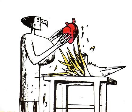 Parmi les créateurs de films d'animation, signalons le Polonais Walerian Borowczyk (né à Kwilicz en 1923) dont l'oeuvre est particulièrement originale. Sorti de l'Académie des beaux-arts de Cracovie, il fut peintre, lithographe, dessinateur d'affiches pour le cinéma, avant de se lancer dans les films d'animation, en compagnie de Jan Lenica. Ses thèmes sont en général empreints d'une métaphysique assez douloureuse et symbolique, assez proche de Kafka et d'Ionesco, et plongent le public dans une sorte de cauchemar surréaliste. Le Théâtre de M et Mme Kabal [illustration ci-dessous], par exemple, est en même temps un cauchemar et une méditation sur son époque troublée et inquiétante.