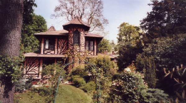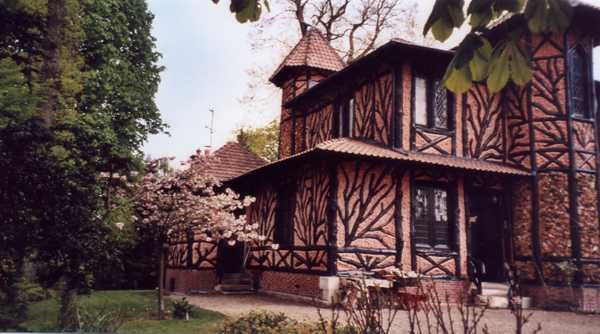 Wood Cottage en 2007. Complément d'information : *** Pour en savoir plus ... Wood Cottage - Monique Suzanné de Bellefontaine, L'Ecritoire du Publieur, Paris, 2005. Wood Cottage, histoire d'une demeure, Ville du Vésinet, Les presses franciliennes, Paris, 2007. Wood Cottage, évocation d'une « folie » Christian Ramette, Société d'Histoire du Vésinet, avril 2016. *** Notes : [1] Pour respecter le vœu de madame Suzanné, nous avons corrigé le présent texte, paru en 2001, en suprimant l'article « le » devant le nom « Wood Cottage ». Il faut dire « Wood Cottage » et non « LE Wood Cottage ». Nous signalons que le «é» du patronyme est un choix de l'intéressée qui n'est validé par aucun acte d'état-civil, aussi loin que l'on ait pu remonter. [2] Alphonse-Charles Tricotel, architecte, entrepreneur de construction et treillageur, fondateur en 1848 des Établissements Tricotel. [3] Cette date semble trop précoce. En 1857, La colonie du Vésinet n'existait pas. Dans les archives notariales, on trouve que M. Taconnet à acheté les lots 71 (1884m²) et 72 (1741m²) de l'ilot 26 à la 40e adjudication, à l'automne 1863 et plus tard le n°70 (1838m²) soit 5463m² qui constituaient la parcelle 272 du cadastre. Peut-être en 1857 avait-il eu connaissance du projet de la Compagnie Pallu mais alors, aucune parcelle n'était en vente. [4] Si, parmi les premiers acheteurs, certains ont pu se constituer de vastes propriétés en réunissant plusieurs lots, la taille moyenne d'un lot était de l'ordre de 2000m², soit proche des lots ayant constitué la propriété de M. Taconnet. Son fils, Mario (1858-1937) a acquis à la génération suivante (1902), la propriété contigüe (lot 69, 1750m²) soit la parcelle 273 du cadastre, portant la surface totale de la propriété Taconnet à 7301m² avant qu'elle soit morcelée dans les années 1960.