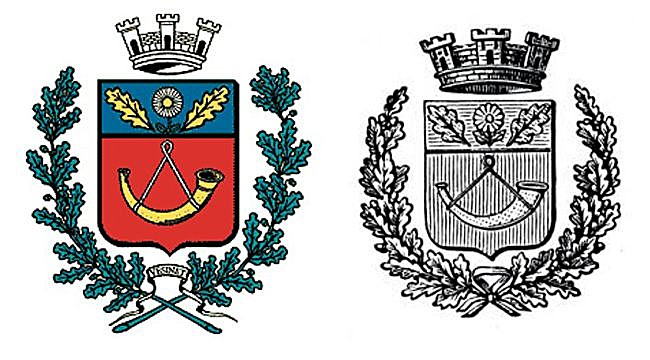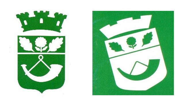 En, 1970, avec la généralisation de l'usage des logos, la municipalité adopta une forme stylisée de son blason (ci-dessus à gauche), déclinée dans toutes les couleurs. Elle resta en usage jusqu'en 1995, date du retour à la version historique de 1898.